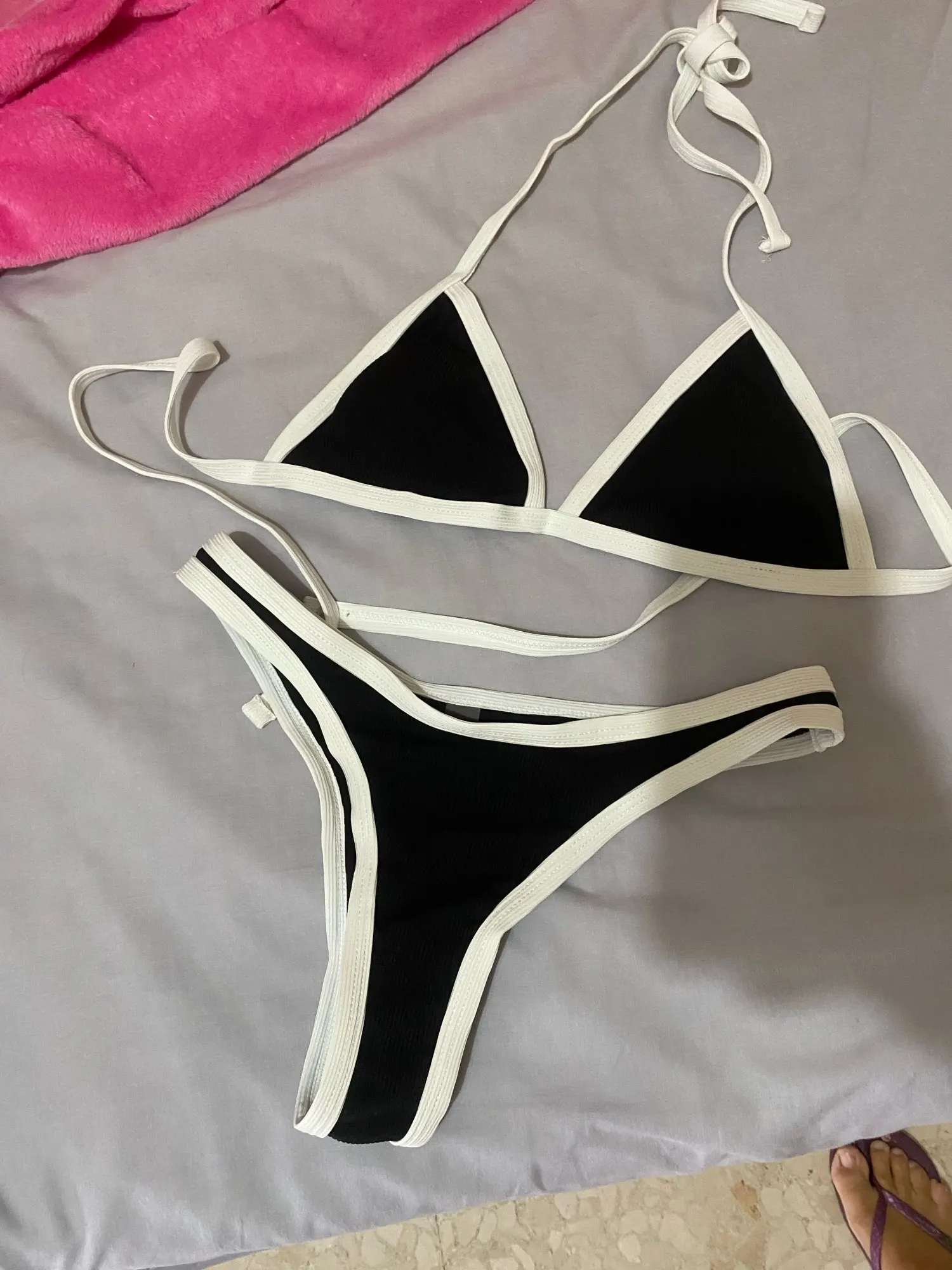 Beautiful bikini. Medium size M. Soft fabric and fits very well to the whole body. I recommend this seller!
