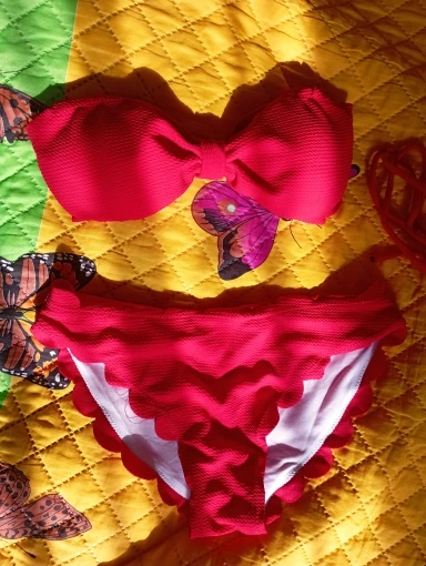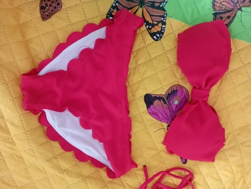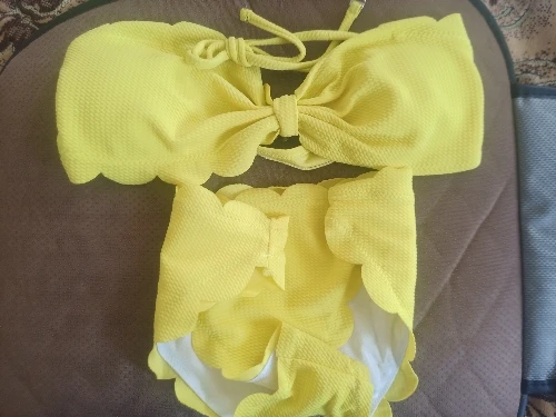 The swimsuit is very good. Color yellow, size L. Bikini model, separate. There is a push up in the bra. Looks bright. The item is fully consistent with the seller's description and photo. I put 5 stars. I recommend everyone to buy.