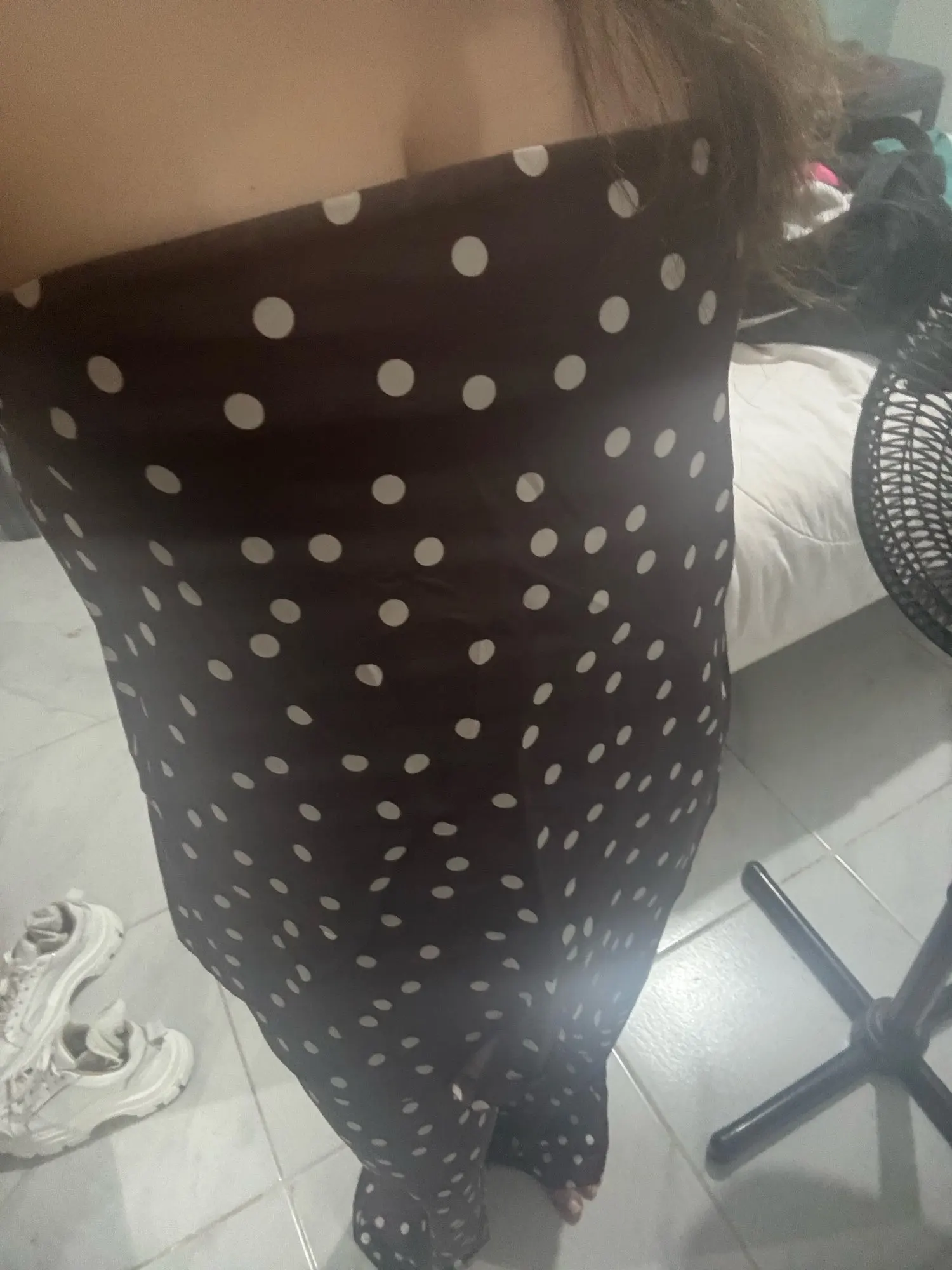 This set includes a minimalist strapless crop top with a subtle curved hem and zipper back, matched with wide-leg, high-waisted pants that flatter the figure with their relaxed yet tailored silhouette. Available in a bold polka dot print or classic solid black, the satin finish catches the light just right — adding movement and glow to every step.